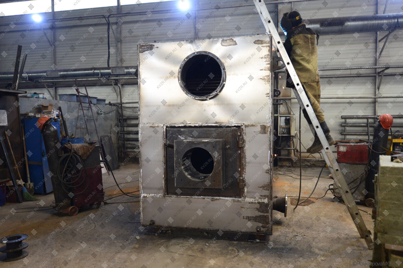 Все водогрейные котлы 1 4 МВт нашего производства - стальные, горизонтальные, водотрубные, прямоточные и компактные. Трубная часть котельного блока выполняется из труб различных диаметров, материал труб сталь 10 и 20. Блок снаружи обваривается стальной охлаждаемой полосой, поэтому в наших котлах исключена возможность задымления котельного зала. Снаружи на каркас из профильной трубы и швеллера крепится утеплитель и декоративная обшивка из полимерного листа. В обшивке предусмотрены лючки для очистки поверхностей нагрева.