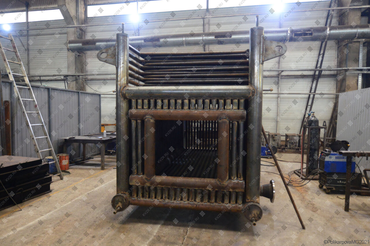 Все водогрейные котлы 2 2 МВт нашего производства - стальные, горизонтальные, водотрубные, прямоточные и компактные. Трубная часть котельного блока выполняется из труб различных диаметров, материал труб сталь 10 и 22. Блок снаружи обваривается стальной охлаждаемой полосой, поэтому в наших котлах исключена возможность задымления котельного зала. Снаружи на каркас из профильной трубы и швеллера крепится утеплитель и декоративная обшивка из полимерного листа. В обшивке предусмотрены лючки для очистки поверхностей нагрева.