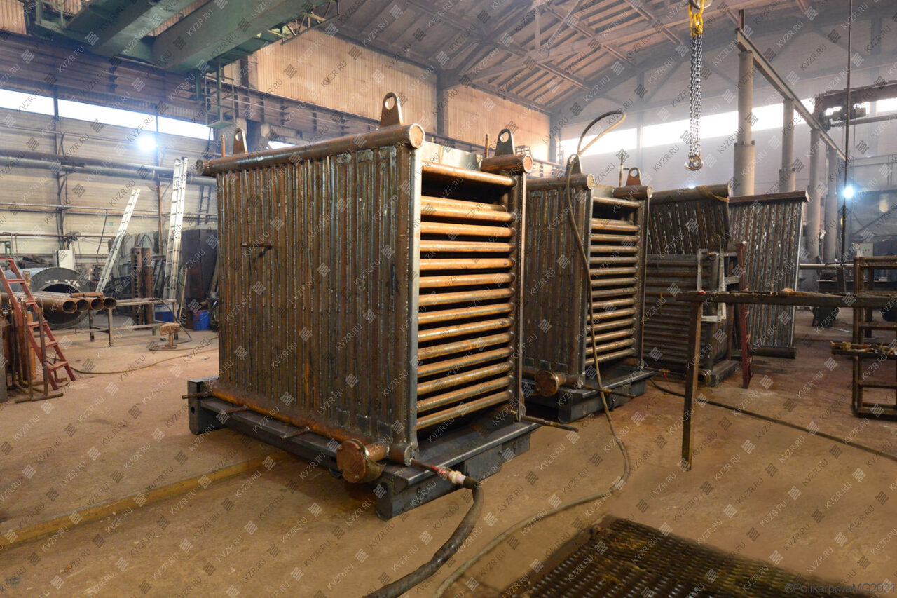 Все водогрейные котлы 1450 кВт нашего производства - стальные, горизонтальные, водотрубные, прямоточные и компактные. Трубная часть котельного блока выполняется из труб различных диаметров, материал труб сталь 10 и 20. Блок снаружи обваривается стальной охлаждаемой полосой, поэтому в наших котлах исключена возможность задымления котельного зала. Снаружи на каркас из профильной трубы и швеллера крепится утеплитель и декоративная обшивка из полимерного листа. В обшивке предусмотрены лючки для очистки поверхностей нагрева.