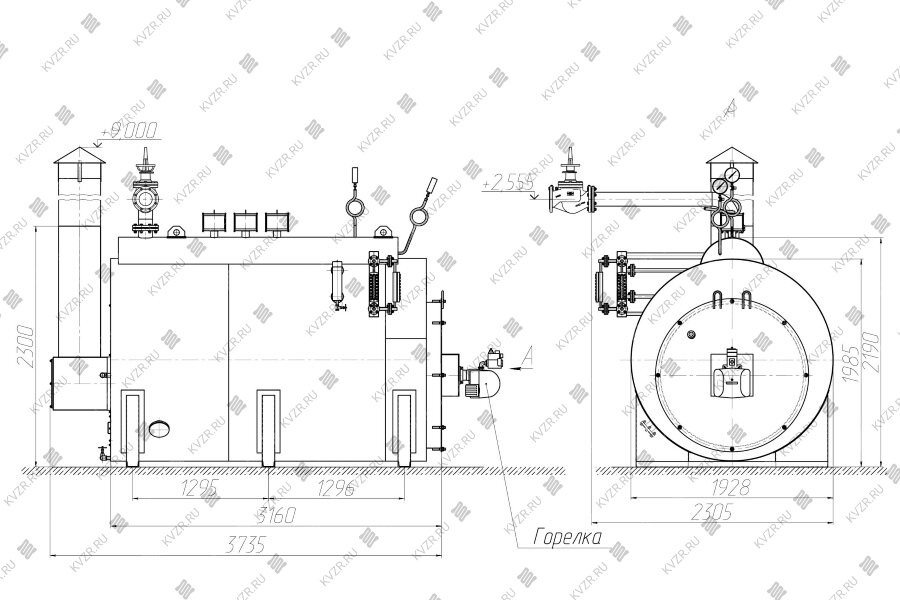 Компактные горизонтальные паровые котлы КПа парообразователи поставляются блоками максимальной заводской готовности. Котельный блок устанавливается в котельной на специально подготовленную ровную поверхность и закрепляется анкерными болтами. Агрегат подсоединяется по воде, устанавливается запорная арматура на подводящем трубопроводе и отводящем паропроводе, устанавливаются предохранительные клапаны и контрольно измерительные приборы. На фронтовую плиту крепится горелка, подключаемая к топливопроводу. Монтируется газоход. Подключается котельная автоматика.