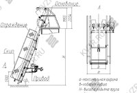 Транспортер СКИП 600 представляет собой устройство, собранное последовательно основание – опорной рамы предназначено для передачи нагрузки от веса подъемника и поднимаемого груза на опорную поверхность, направляющей – рамы с полозьями для движения в них ковша (скипа), скипа – ковша для загрузки в него и подъема в нем сыпучего материала, ограждений для ограничения доступа к движущимся элементам подъемника, привода – силового агрегата с тормозом осуществляющего перемещение ковша по направляющей с помощью канатной тяги, в крайних положениях ковша устанавливаются концевые выключатели для ограничения перемещения ковша и автоматизации приема крайних положений в ходе рабочего цикла.